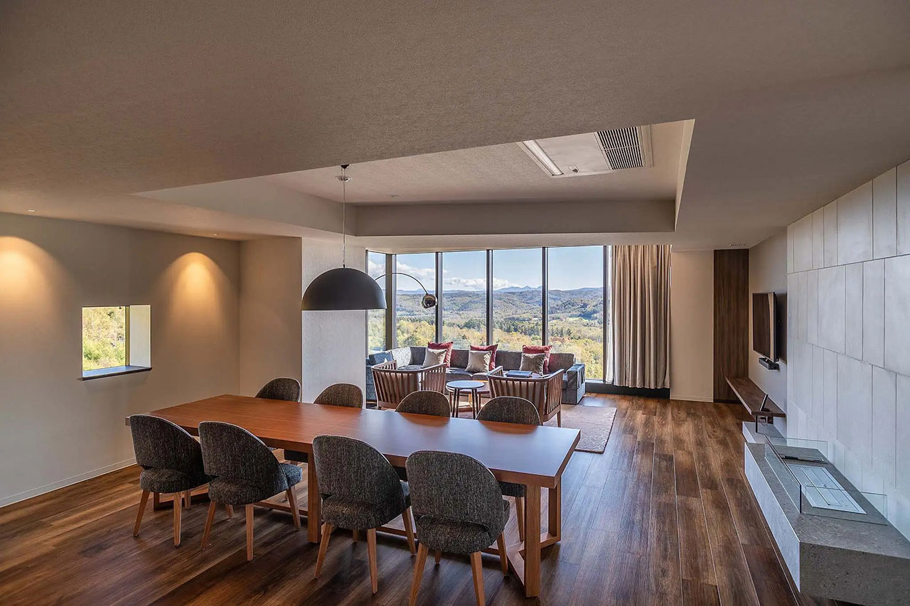 호텔의 건축은 자연과의 조화를 테마로 설계되었으며, 아침 햇살이 비추는 밝은 공간과 석양의 부드러운 색감이 어우러진 인테리어가 돋보입니다. 넓은 창문을 통해 루스츠의 자연경관을 감상하며 하루 종일 자연의 아름다움을 느낄 수 있습니다. 스키 후에는 루스츠 리조트의 명물인 코토부키 온천에서 피로를 풀며 완벽한 힐링을 경험할 수 있습니다. 신선한 공기를 마시며 즐기는 노천탕과 고요한 동굴탕에서 몸과 마음을 재충전하세요.